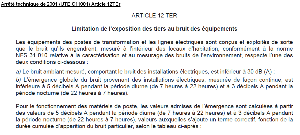 Le fonctionnement d’un transformateur étant de 24h/24h, les exigences réglementaires sont les suivantes :