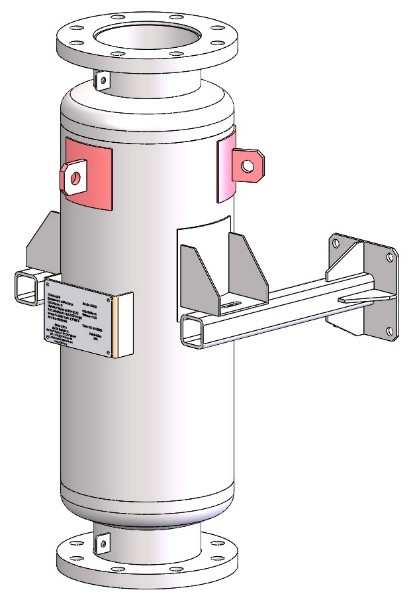 - L’encombrement. Les silencieux ont des diamètres jusqu’à 3 fois plus importants que la conduite initiale. Ils sont aussi assez longs (1.5m à 3m pour des silencieux de surpresseurs DN200). Il faut donc prendre soin de les prévoir assez tôt dans la réflexion des cheminements des conduites sous pression.