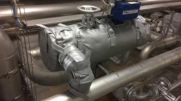 Calorifuge acoustique souple : La version souple et démontable du calorifuge acoustique permet une mise en place et un démontage aisé en remplaçant les tôles Isoxal par une membrane en tissu de verre siliconé.