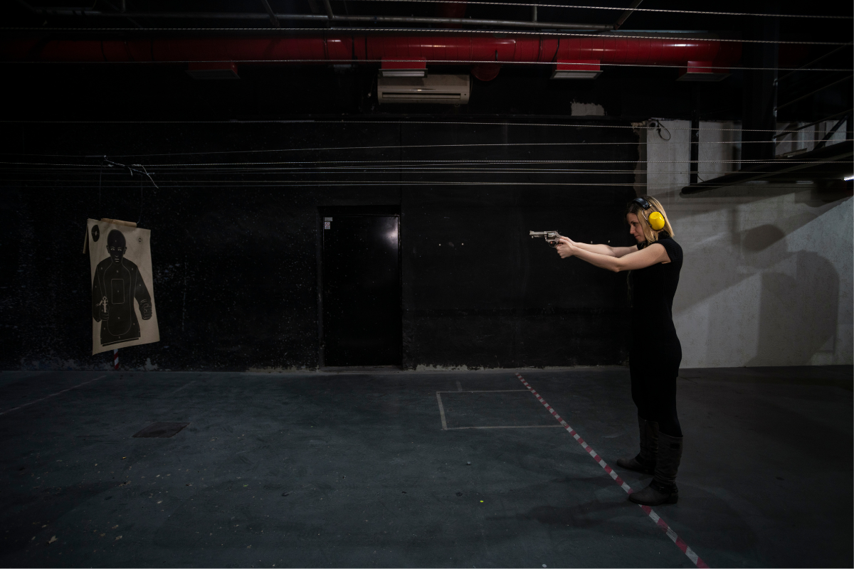 Les tirs à armes à feu génèrent des niveaux très élevés au point de tir : par exemple, selon une étude, une arme de poing de petit calibre produit environ 122 dB à 1 mètre de la bouche du canon, tandis que des pistolets de gros calibre peuvent dépasser 133 dB et des armes d’assaut jusqu’à ~137 dB à la source.