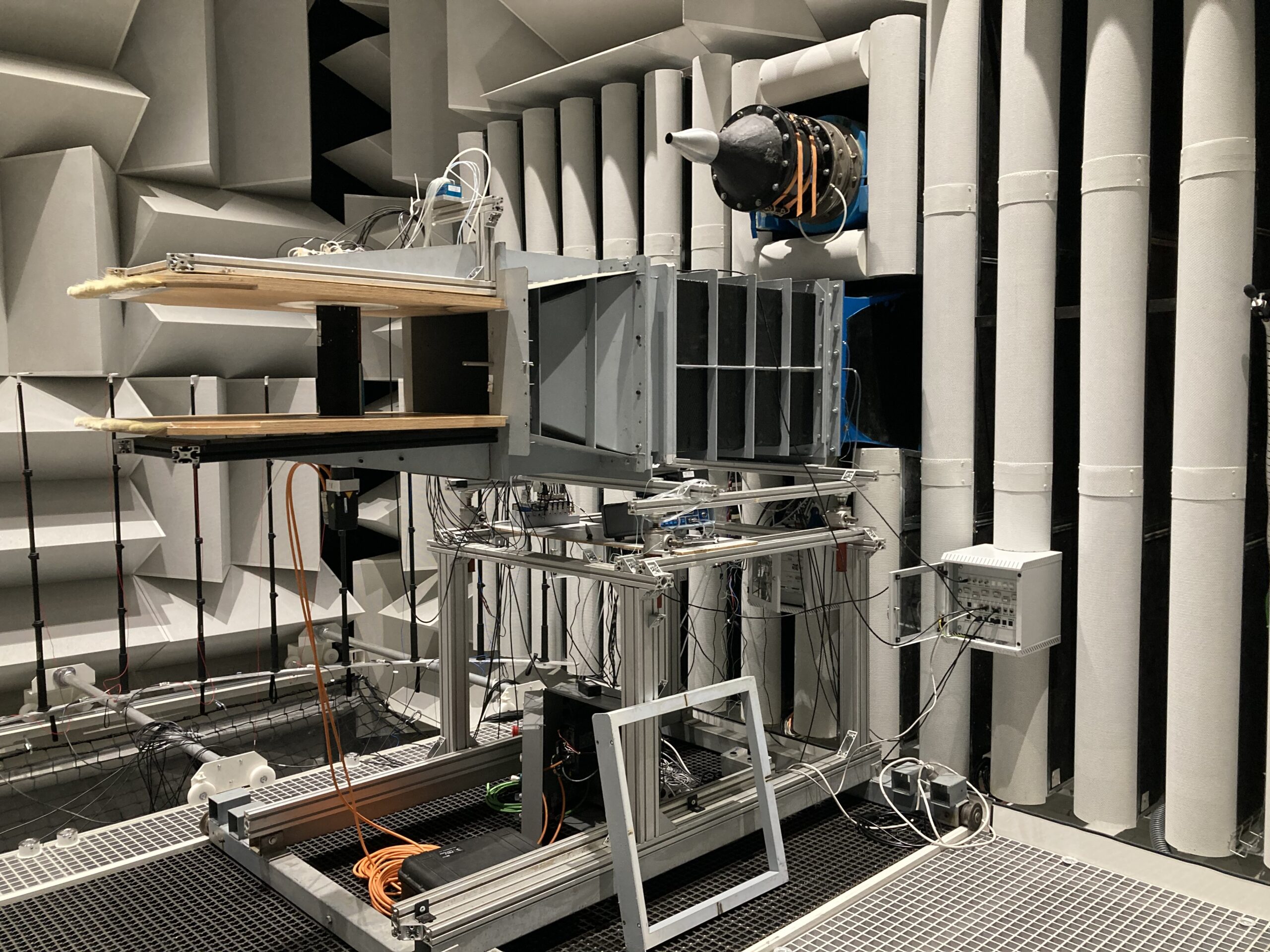 Parmi les supports motorisés que nous réalisons régulièrement, on trouve des tourelles d’incidence (pitch), des tables de dérapage (yaw) et des supports permettant le roulis (roll). Du côté des équipements fixes, nous proposons des tunnels équipés (pouvant être vitrés pour la PIV), des convergents secondaires, des divergents, ainsi que des supports spécifiques installés en paroi.